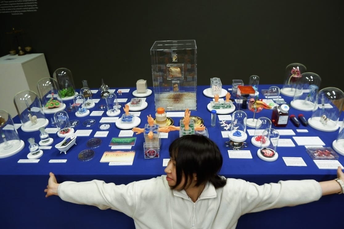 Chen and her art exhibition showcasing part of the supply chain ecologies behind biotechnology (image by Y.Chen)