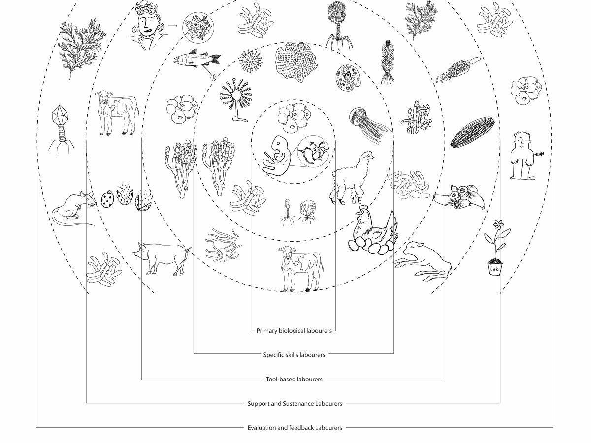 I was surprised to find that not only tools, but also sustenance systems and evaluation mechanisms, can all be derived from living sources. This revealed how deeply laboratory operations appropriate existing ecological relations, and how quickly visibility and recognition decline from the centre to the periphery of biotech production.