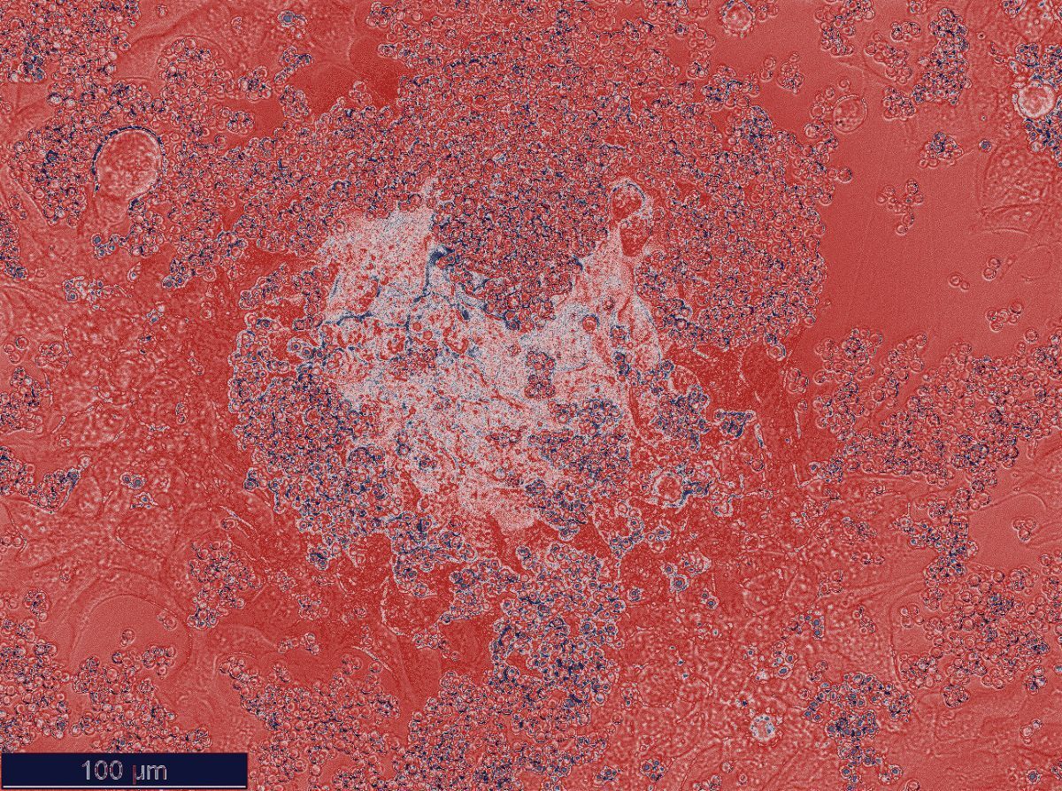 A microscope image of yeast and HEK cell co-culture experiment (image by Y.Chen)
