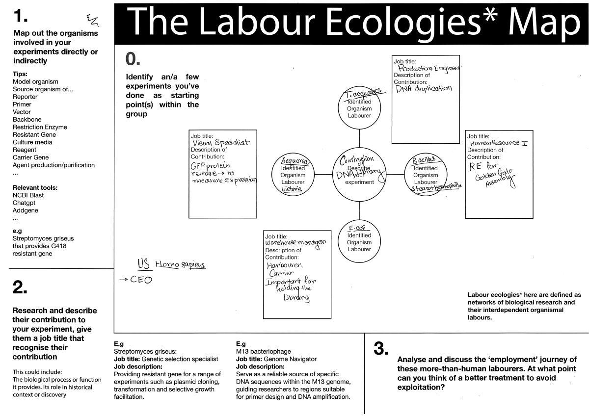 Participants were generally surprised by the sheer number of organisms involved in their work, starting with main experimental organisms and gradually extending to more assistive roles. It was rewarding to see everyday reagents reframed not simply as tools, but as outcomes of living ecologies.